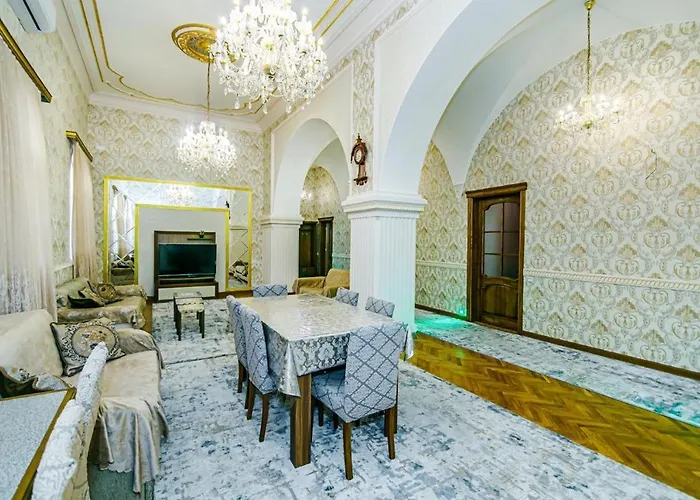 Nizami Three Bedroom features a balcony and a dressing room with a fireplace, as well as such comforts as an ironing set and an air conditioner. Guests can make the most of their leisure time with a flat-screen TV with satellite channels at their disposal. Beds fitted with down-feather pillows are at guests' disposal. For added convenience, a bathtub, a walk-in shower, and a separate toilet are available at the accommodation. Moreover, there are a hairdryer, bath sheets, and slippers as well.